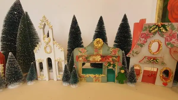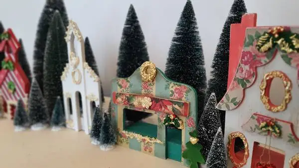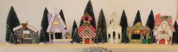 • 6 casitas de aproximadamente 20 x 13 cm, cada una con su base para apoyarlas o pararlas.