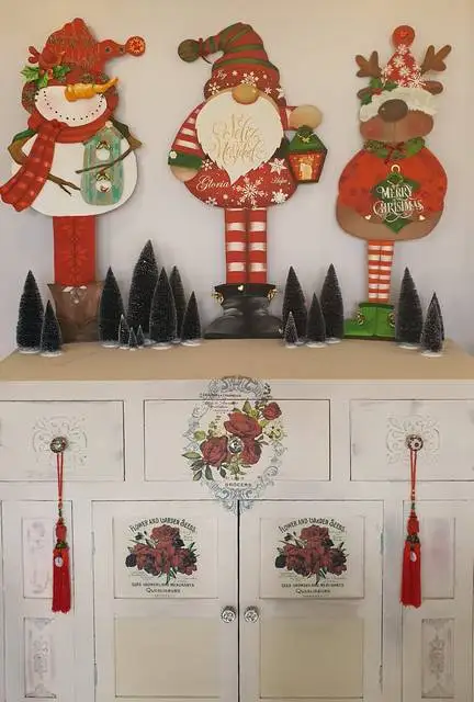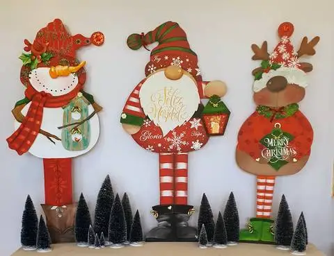 • Tres figuras : 1 noel, 1 hombre de nieve, 1 reno y sus medidas de 1m x 0,50 cm.