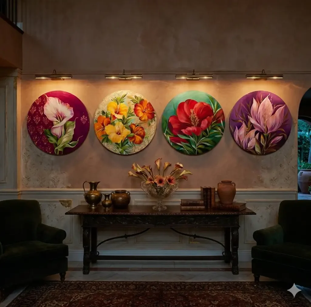 Aquí pintamos las distintas formas de verlas y colocarlas en un jarrón, su follaje y movimiento. También trabajaremos el florero de porcelana y los estampados en sus brillos. ¡Las luces, las sombras y los efectos visuales importantes!